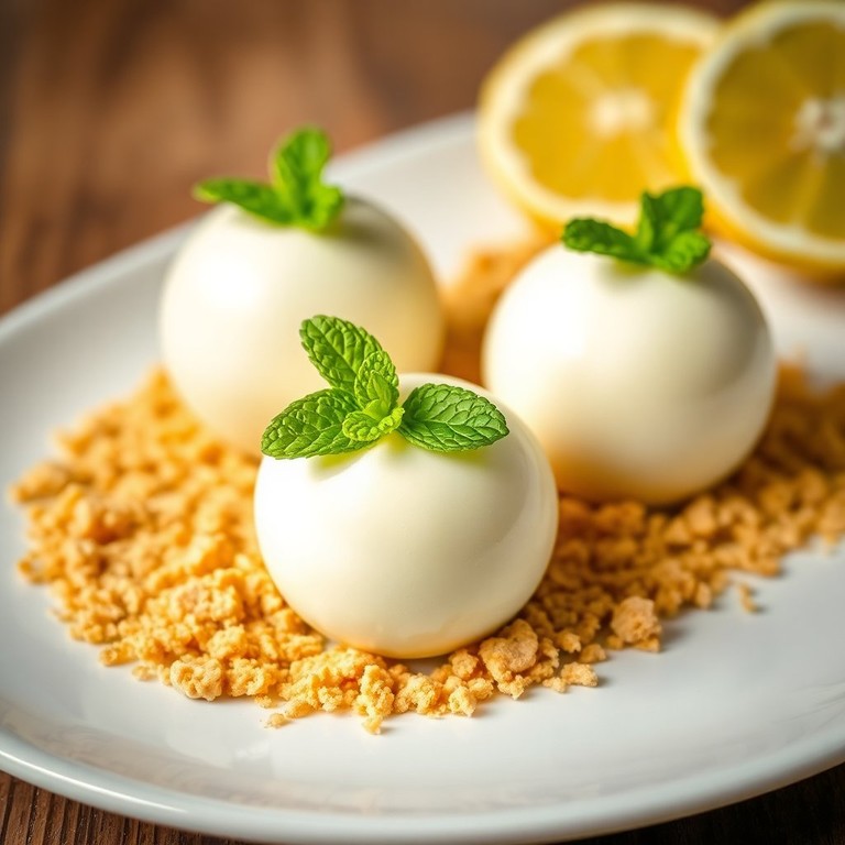 Esferas de Mousse de Limón con Toque de Menta y Crujiente de Galleta