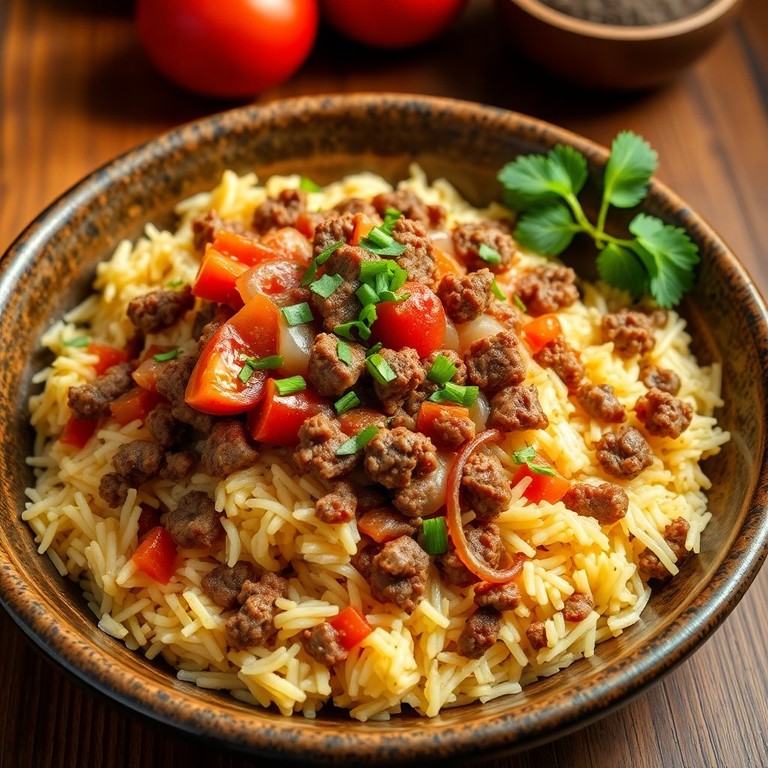 Uma deliciosa combinação de arroz, carne moída e temperos, ideal para um almoço prático e saboroso.