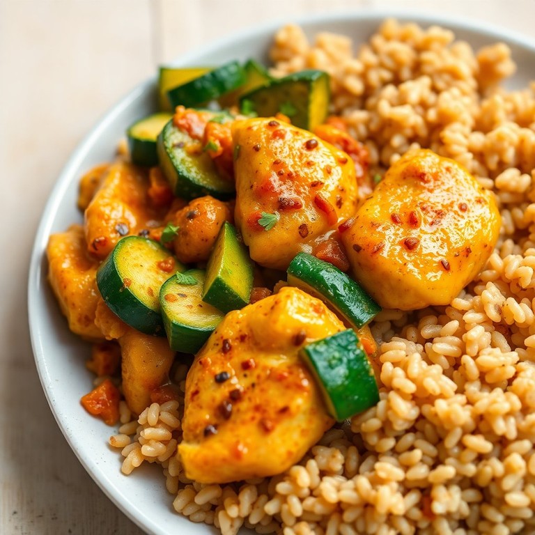Une version enrichie du classique sauté de courgettes au curry, cette recette ajoute du poulet pour un plat encore plus savoureux et nourrissant. Parfait pour un repas rapide et équilibré, ce plat combine des courgettes tendres, du poulet juteux et du riz complet pour une expérience culinaire complète.