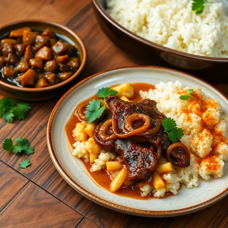 Uma combinação perfeita de carne suculenta com feijão temperado, acompanhada de arroz, ideal para um almoço em família.
