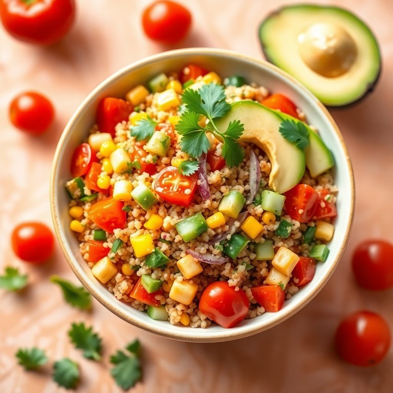 Una ensalada fresca y nutritiva que combina la quinoa con una variedad de verduras coloridas, perfecta para una comida saludable y deliciosa.