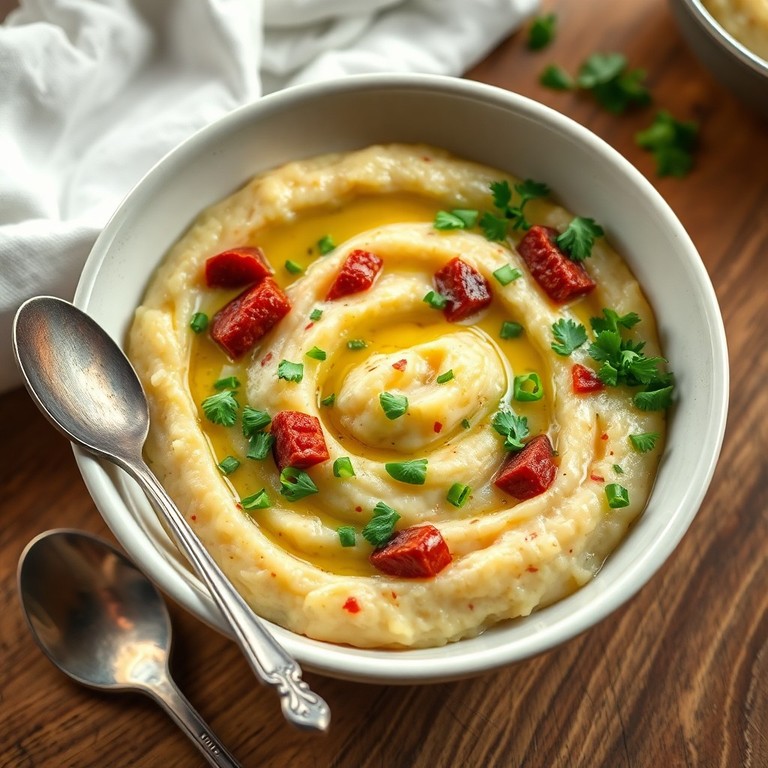 Un puré de papa cremoso con un toque ahumado gracias al chorizo español y un punto picante del pimentón, ideal como acompañamiento o plato principal.