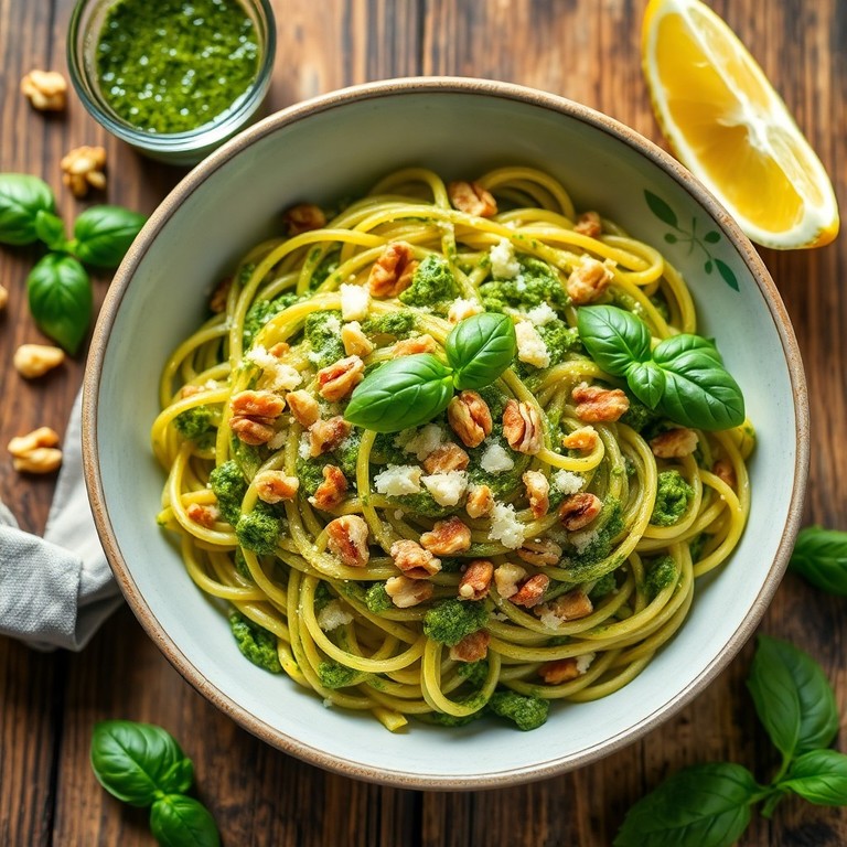 Pasta de Arroz Integral con Pesto de Albahaca y Nueces Sin Azúcar