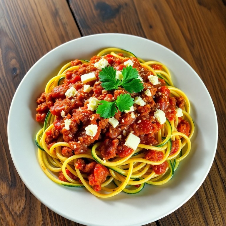 Espaguete de Abobrinha à Bolonhesa com Queijo de Castanha