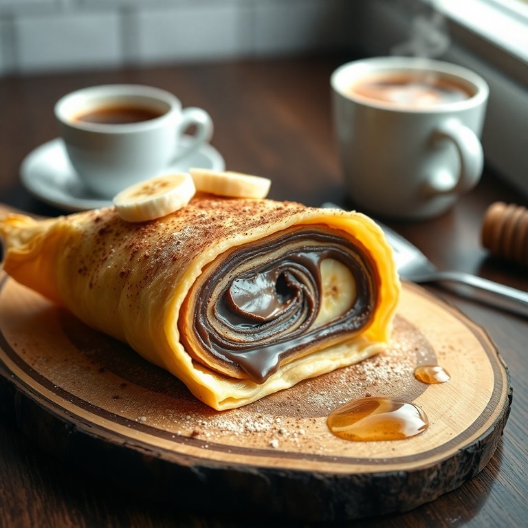 Uma opção versátil e sem glúten para o café da manhã ou lanche. A tapioca ganha um recheio cremoso e saboroso com a combinação de banana, leite em pó e chocolate.