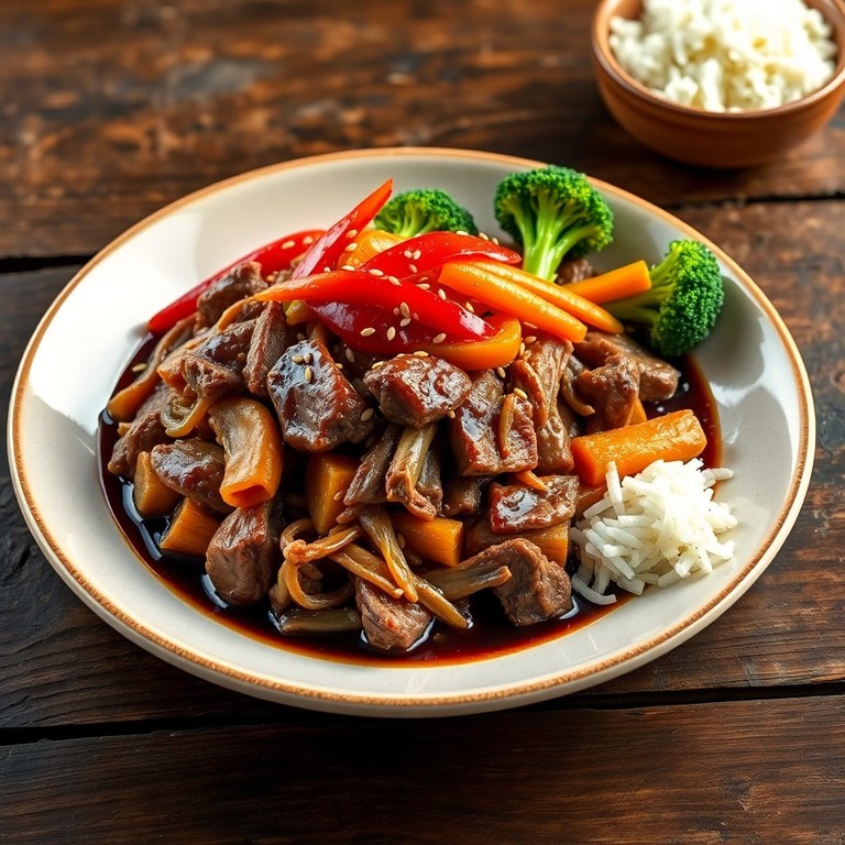 Carne de panela com um toque asiático, marinada em shoyu e gengibre, cozida com legumes crocantes e finalizada com gergelim torrado. Uma explosão de sabores!