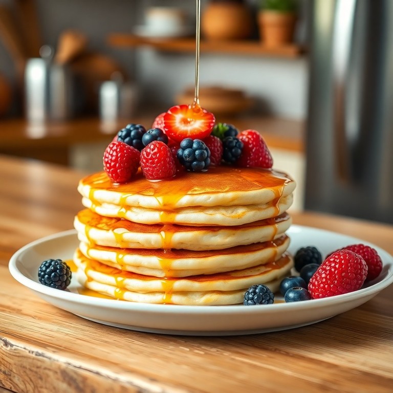 Una versión clásica y esponjosa de panqueques de vainilla, adaptada para hacer 24 panqueques perfectos para un desayuno reconfortante en familia. Esta receta es ideal para compartir y disfrutar en buena compañía.