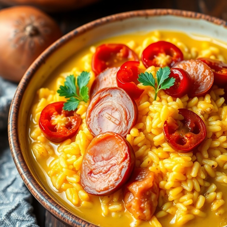 Arroz Caldoso com Linguiça, Pimenta Biquinho e Açafrão