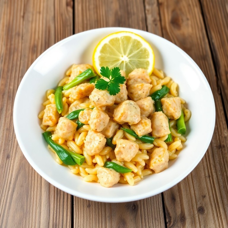 Een snelle en smaakvolle maaltijd met orzo, kip, paksoi en een frisse citroen-roomsaus, op smaak gebracht met aromatische kruiden. Binnen 30 minuten op tafel.