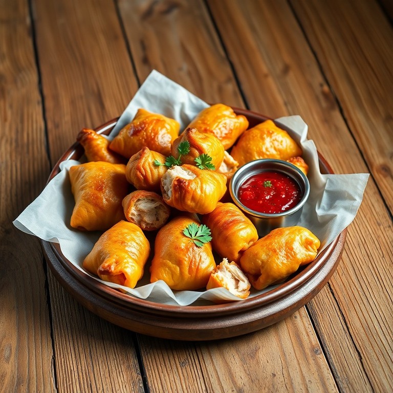 Uma explosão de sabores brasileiros em cada mordida. Coxinhas de frango desfiado, empanadas e fritas até a perfeição, acompanhadas de um molho de pimenta caseiro para um toque picante.