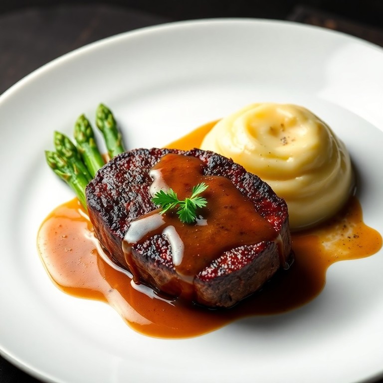 Uma interpretação sofisticada do clássico francês, com filé mignon, molho de vinho tinto rico e acompanhamentos requintados.