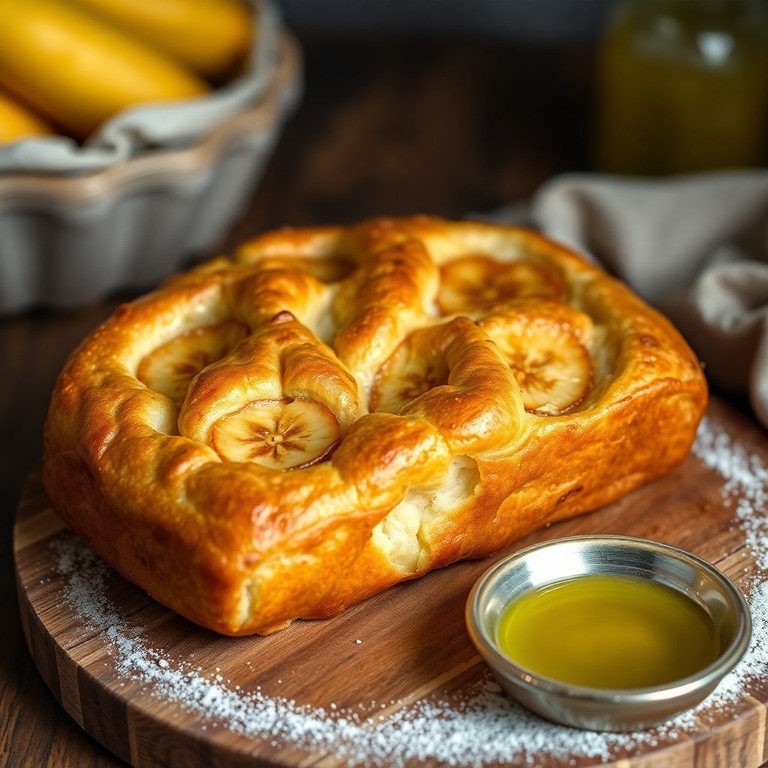 Focaccia crocante com toque adocicado de banana, fermentada naturalmente, perfeita para um lanche diferenciado. A combinação da farinha de trigo com farinha de milho confere textura única, enquanto a banana adiciona um sabor suave e doce que harmoniza com o azeite de oliva.
