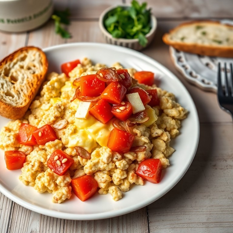 Ovos Mexidos com Tomate e Cebola Crocantes
