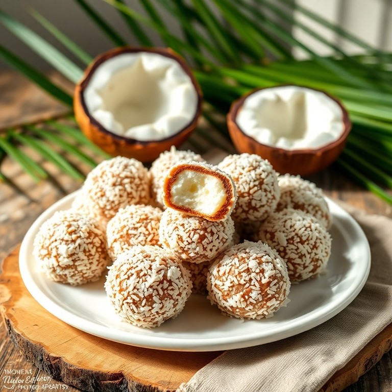 Versão tropical do brigadeiro tradicional, usando coco ralado, leite de coco, creme de leite e açúcar para um docinho delicado e saboroso, perfeito para festas ou sobremesas.