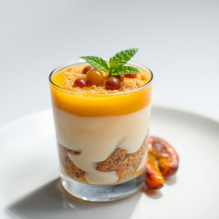 Parfait de Maracujá com Crosta de Leite em Pó e Ganache de Chocolate Branco