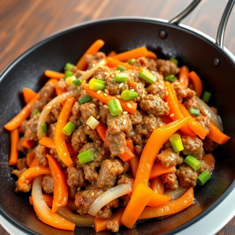 Stir-fry de Carne Moída com Cenoura e Cebola ao Estilo Asiático