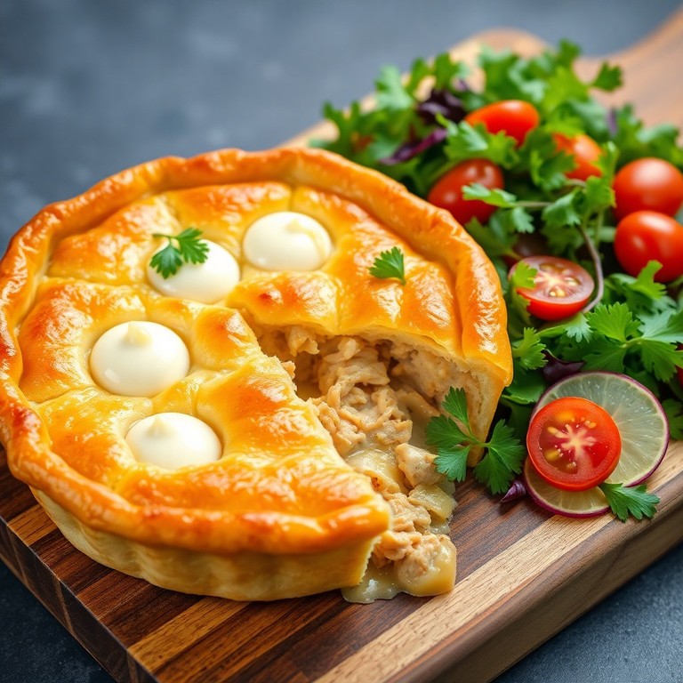 Clássico empadão recheado com frango desfiado, cremoso requeijão e uma massa amanteigada crocante, perfeito para refeições familiares.