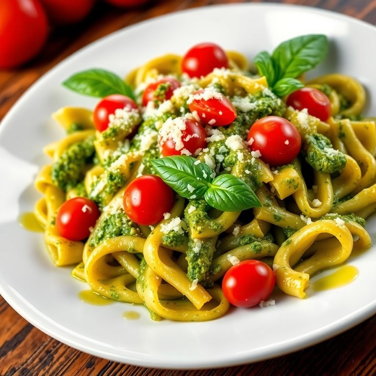 Fácil y rápido de preparar, esta pasta con salsa pesto, tomates cherry y queso parmesano ofrece un almuerzo satisfactorio en pocos minutos. Ideal para quienes buscan una comida completa, fresca y llena de sabor con ingredientes simples y accesibles.
