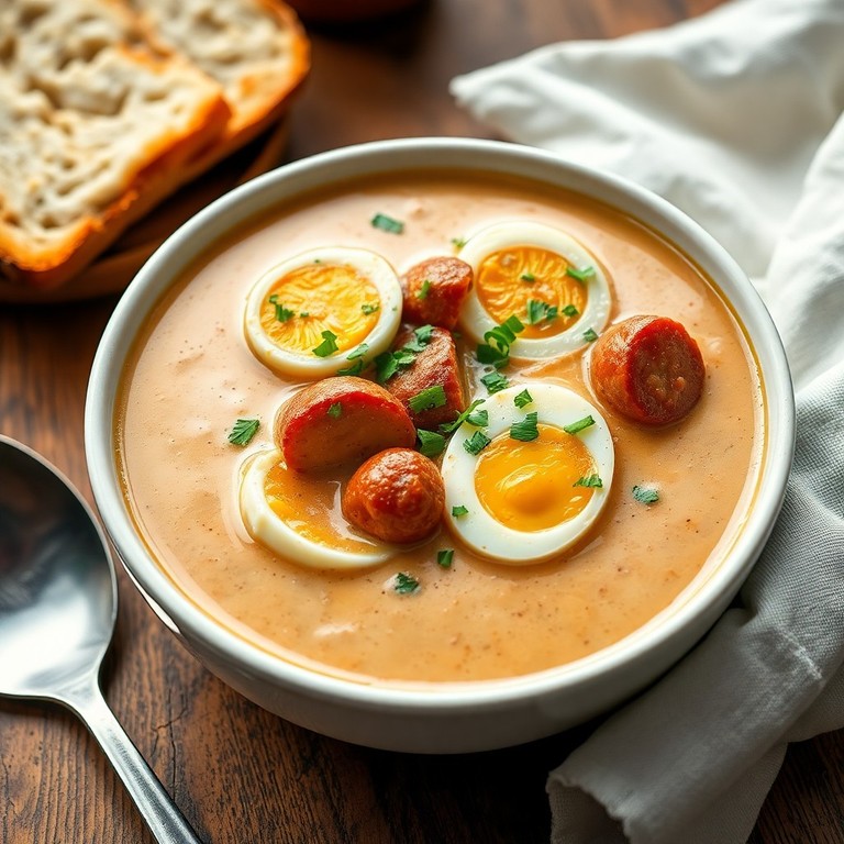 Sopa cremosa e reconfortante feita com calabresa defumada, ovos cozidos, leite e trigo, perfeita para aquecer e nutrir em dias frios. Fácil de preparar, essa receita combina sabores intensos e textura aveludada, ideal para uma refeição acolhedora.