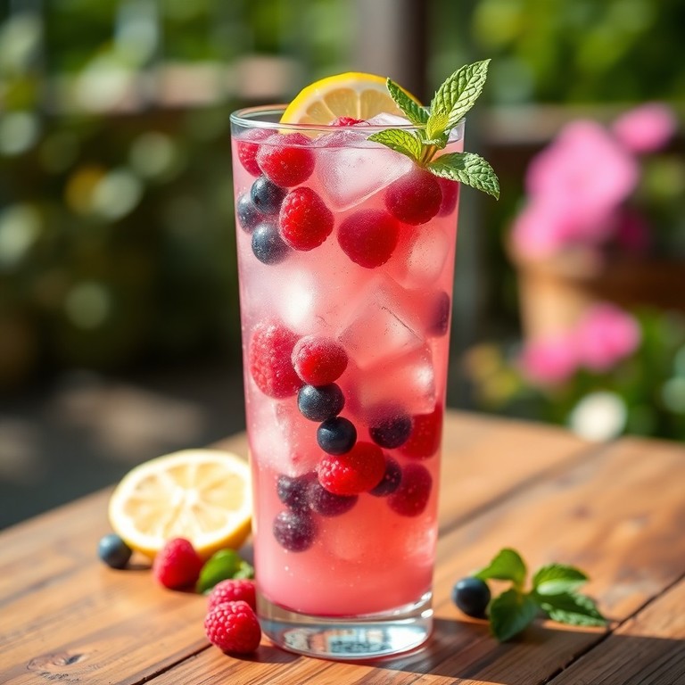 A simple, refreshing summer mocktail combining fresh berries and tart lemon juice served over ice without any fizz. This easy-to-make drink requires no blender and balances sweet and tart flavors perfectly for a vibrant, cooling treat.