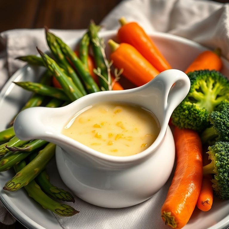 Une sauce beurre blanc onctueuse aux échalotes et au citron, parfaite pour sublimer les légumes vapeur ou pochés. Sa texture crémeuse et son équilibre entre douceur et acidité apportent une touche raffinée et légère à vos accompagnements, tout en respectant les recommandations végétariennes et gemrcn.