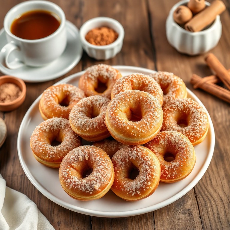 Deliciosos mini donuts caseiros com aroma de baunilha e toque de canela, perfeitos para um café da manhã ou lanche rápido.
