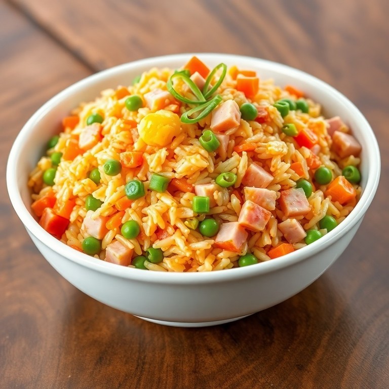 Un clásico arroz frito cantonés con arroz blanco frío, verduras frescas, huevo y jamón, salteado en wok para lograr una textura suelta y un sabor auténtico en solo 20 minutos.