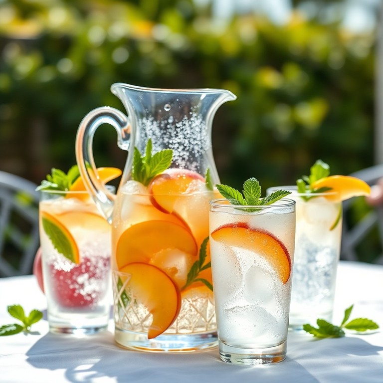A simple yet elegant summer cocktail, this Peach & Mint Summer Fizz combines fresh peaches, aromatic mint, sparkling wine, and a splash of soda for a light, bubbly refreshment. Perfect for sharing, it's made in a pitcher with just five ingredients, making it ideal for easy entertaining on warm days. Serve over ice for maximum chill and enjoy the vibrant, fruity flavors with every sip.