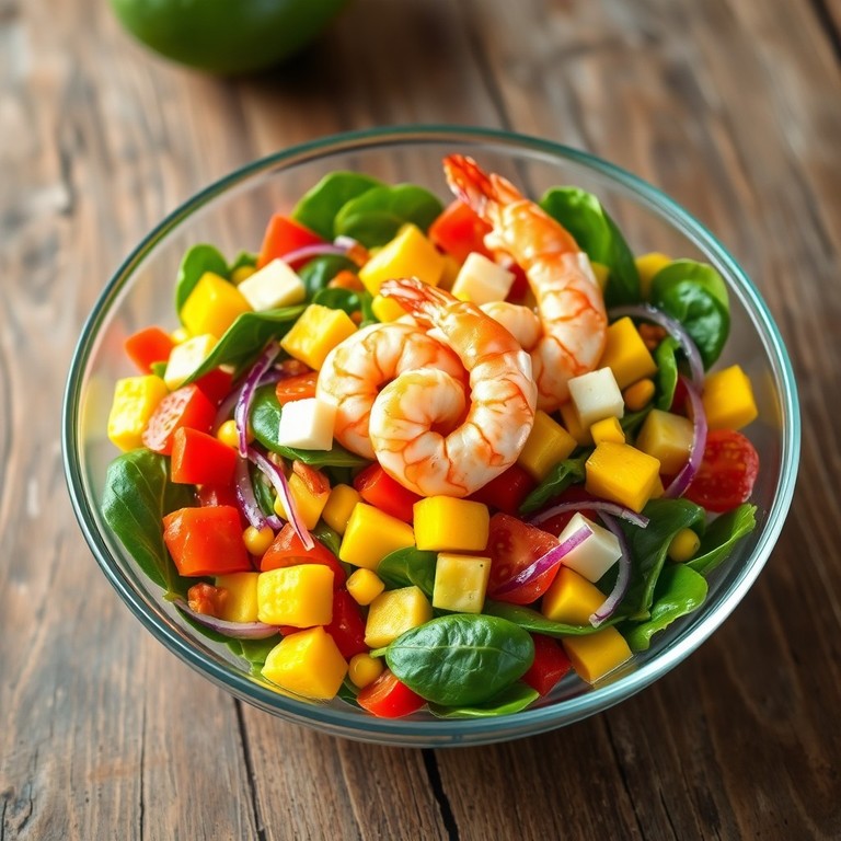 Ensalada Tropical de Aguacate y Mango con Camarones