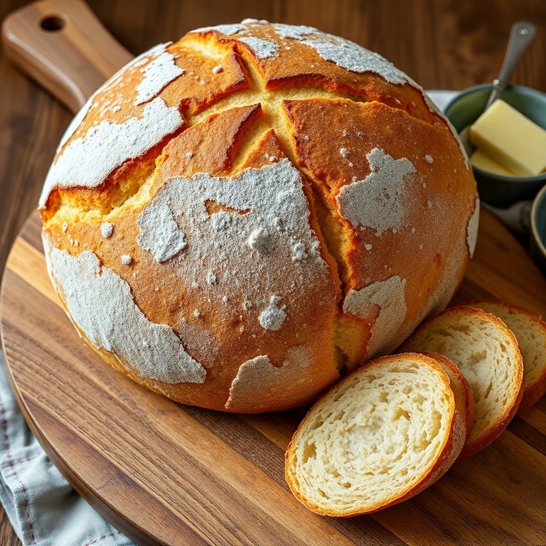 Um pão rústico com crosta crocante e interior macio, feito rapidamente usando bicarbonato de sódio como fermento químico. Ideal para quem não tem fermento biológico, essa receita simples traz um pão saboroso e fácil de preparar.