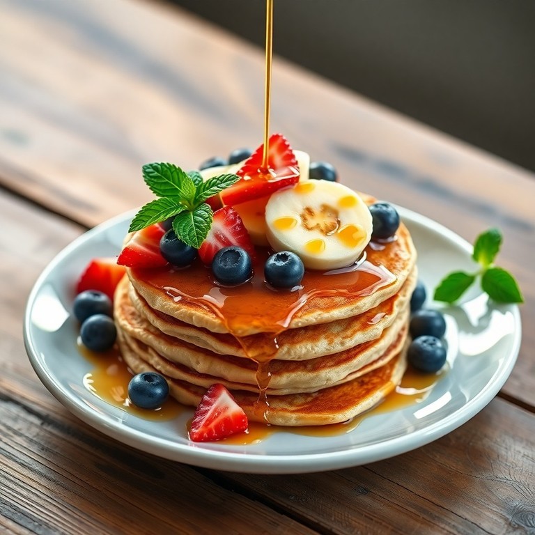 Deliciosas panquecas rápidas, ricas em fibras e proteínas, perfeitas para um café da manhã nutritivo. Feitas com aveia e ovos, essas panquecas são fáceis de preparar e acompanham frutas frescas para uma refeição equilibrada e saborosa.