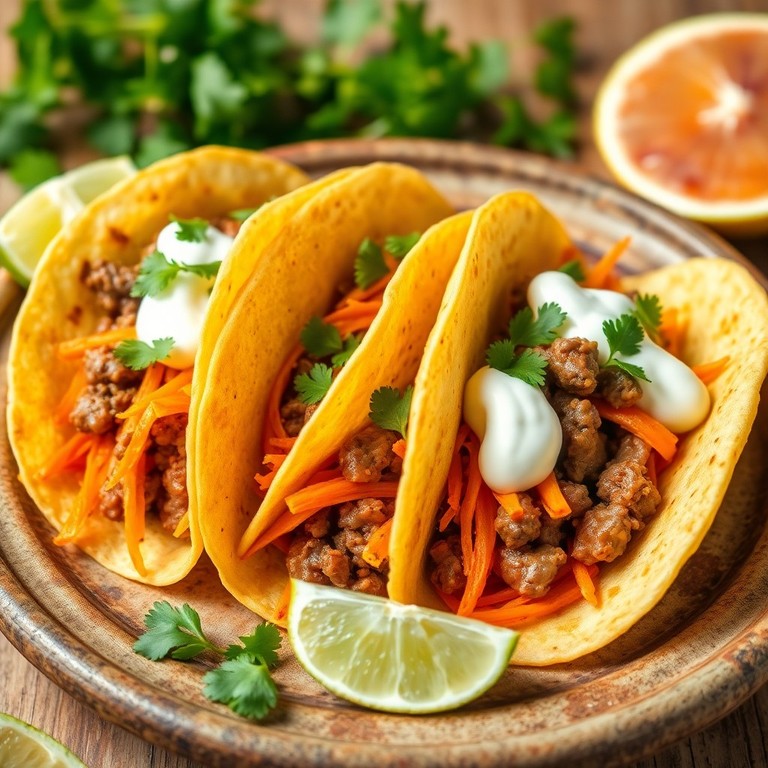 Tacos fáciles y frescos con carne sazonada, zanahorias ralladas y una salsa cremosa de yogur, ideales para un almuerzo ligero y delicioso. Esta receta combina sabores tradicionales con un toque saludable y rápido de preparar.