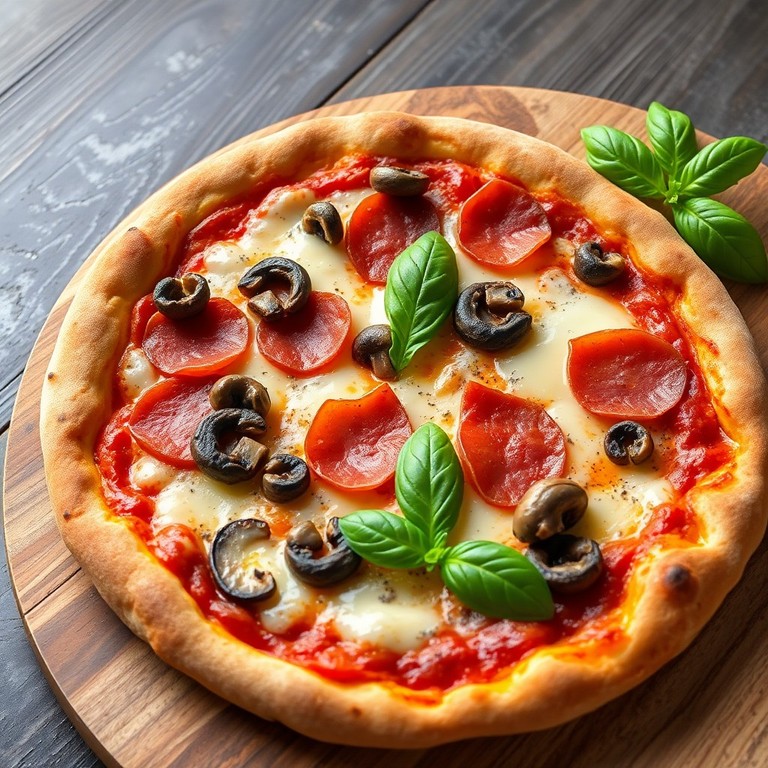 Классическая итальянская пицца с тонким цельнозерновым тестом, насыщенной начинкой из салями, свежих шампиньонов и расплавленного сыра моцарелла. Рецепт адаптирован для диабетиков: используется цельнозерновая мука и исключён сахар, что делает пиццу более полезной без потери вкуса.