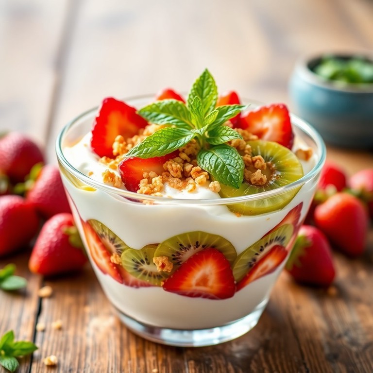 Combinação deliciosa de iogurte natural, frutas da estação e granola crocante, uma opção prática, rica em fibras e vitaminas para um lanche da tarde fácil, rápido e saudável.