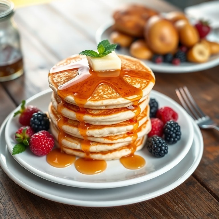 Saftige, fluffige amerikanische Buttermilch-Pancakes, perfekt für ein herzhaftes Frühstück. Die Kombination aus Buttermilch und Backtriebmitteln sorgt für besonders weiche und luftige Pfannkuchen, die traditionell mit Ahornsirup serviert werden.