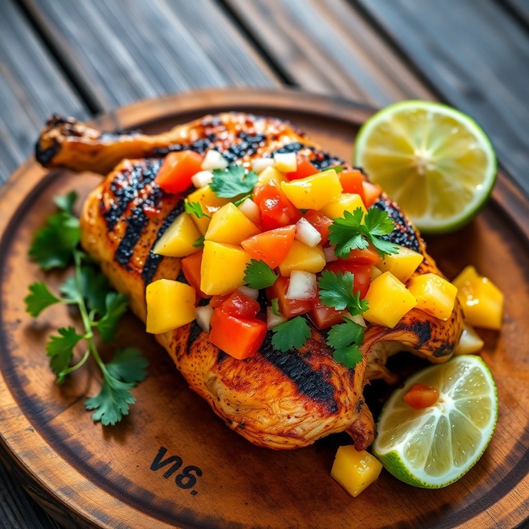 Delicioso pollo asado acompañado de una salsa fresca y agridulce hecha con piña y jitomate, ideal para una comida al aire libre. Esta receta combina el sabor ahumado del pollo a la parrilla con la dulzura natural de la piña y la frescura del jitomate, creando un platillo balanceado y lleno de color.