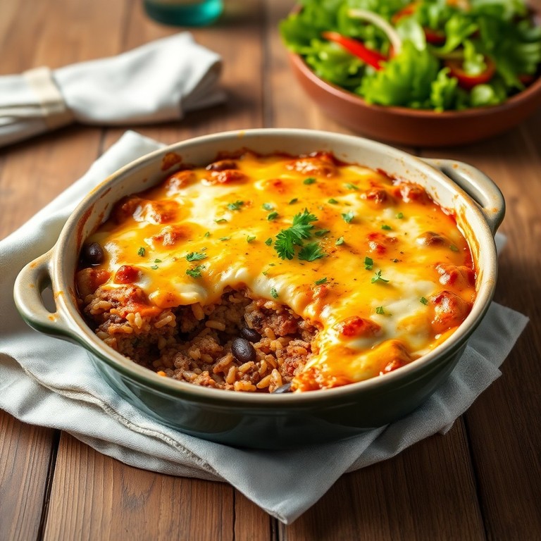 Receita nutritiva e prática, assada com ingredientes simples, combina arroz, feijão e carne em uma deliciosa mistura que agrada toda a família. Ideal para aproveitar ingredientes básicos do dia a dia, resultando em um prato saboroso e reconfortante.