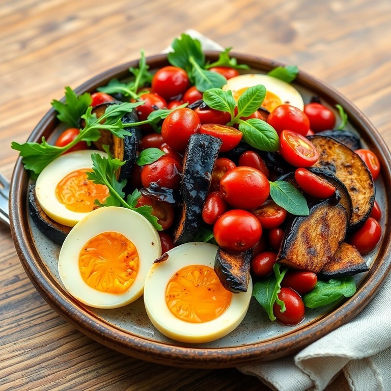 Un piatto fresco e saporito che unisce la morbidezza delle uova sode con il gusto affumicato delle melanzane grigliate, arricchito dalla dolcezza dei pomodorini e dalla consistenza dei fagioli rossi. Perfetto per le calde giornate estive, questa insalata è un equilibrio ideale di sapori mediterranei, semplice da preparare e nutriente.