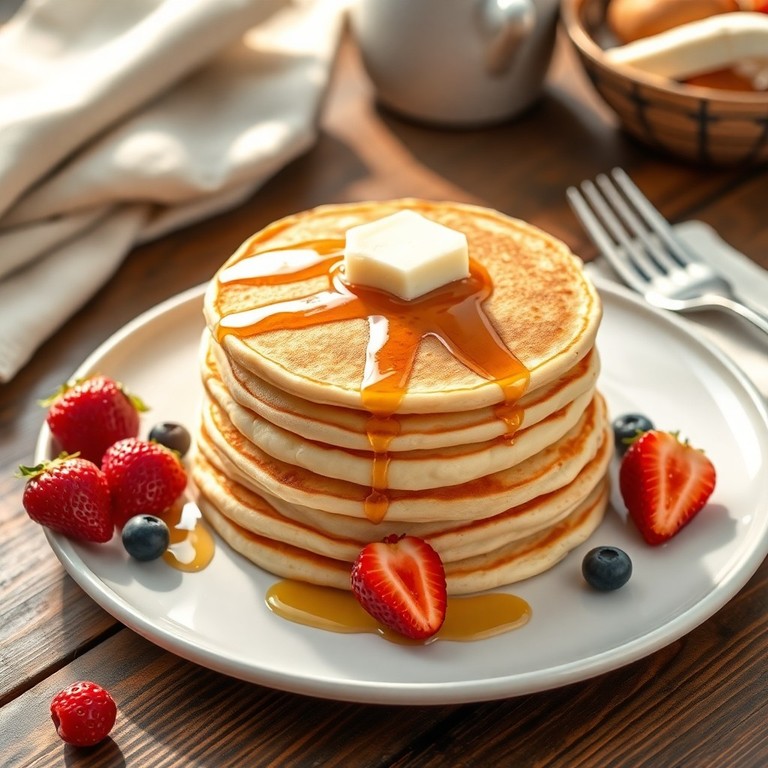 Receita tradicional de panquecas macias e fofinhas, perfeita para um café da manhã reforçado. Utiliza ingredientes básicos e um método simples, garantindo uma massa leve que rende 8 porções generosas. Ideal para servir com mel, frutas frescas ou manteiga.