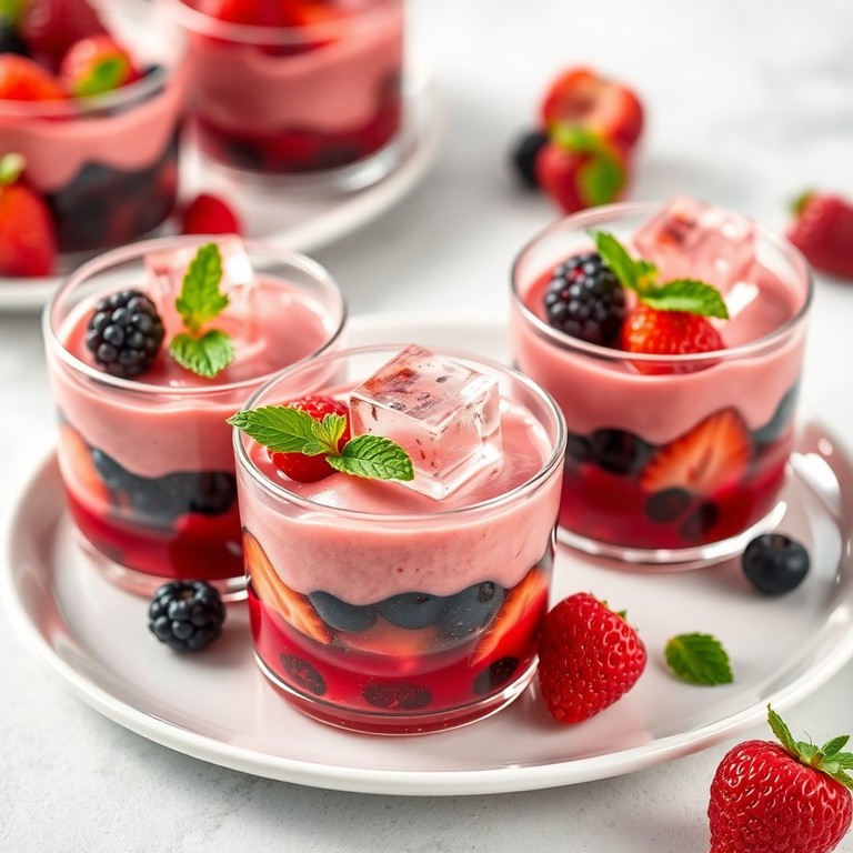 Uma mousse vegana leve e colorida que combina a doçura e acidez das frutas vermelhas frescas com uma gelatina feita apenas com água e agar-agar, resultando em uma textura aerada e um sabor intenso e refrescante. Ideal para quem busca uma sobremesa saudável, sem ingredientes de origem animal, que impressiona pelo equilíbrio entre cremosidade e leveza.