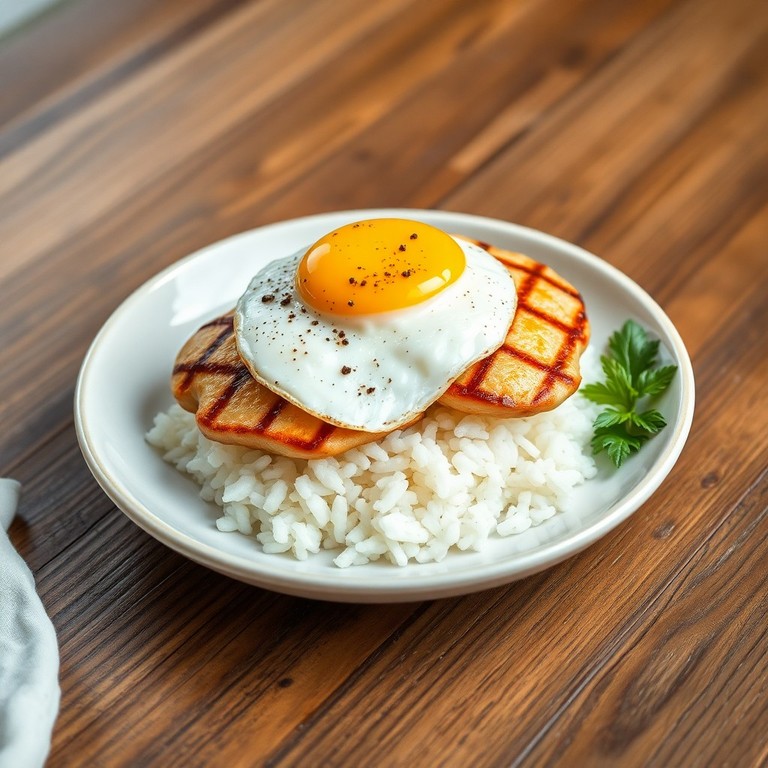 Un plato sencillo y rápido que combina jugoso cuadril de pollo a la plancha con arroz blanco esponjoso y un huevo frito, ideal para una comida nutritiva en pocos minutos. La preparación utiliza condimentos básicos para realzar el sabor del pollo, acompañado de un arroz suave y un huevo con yema cremosa que aporta textura y sabor. Perfecto para quienes buscan una receta práctica y deliciosa.