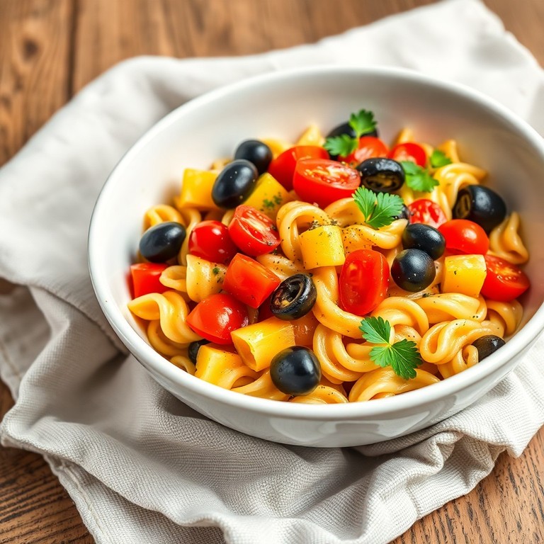 A refreshing and vibrant pasta salad featuring tender roasted aubergine, crisp colorful vegetables, and a zesty tangy vinaigrette. Perfect for warm weather gatherings, this dish combines Mediterranean flavors with a satisfying texture, making it an ideal light lunch or side dish.