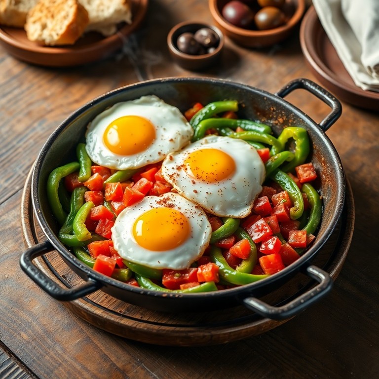 Domates, yeşil biber ve yumurta ile hazırlanan geleneksel Türk kahvaltısı, pratik ve lezzetli bir lezzet sunar. Taze yeşil biberlerin hafif acılığı ve domatesin tatlılığı, yumurtanın yumuşak dokusuyla birleşerek sabah sofralarınıza renk ve enerji katar.
