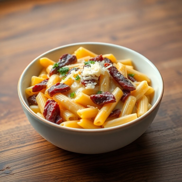 Macarrão Cremoso com Queijo, Ovos e Carne Seca