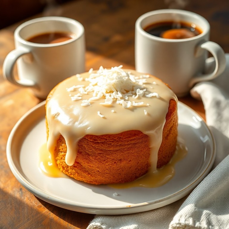 Um clássico brasileiro, com textura úmida e sabor intenso de coco, perfeito para acompanhar um café da tarde. Este bolo é preparado com uma massa macia e leve, embebida em uma calda cremosa de leite de coco que garante sua característica umidade e sabor marcante. Ideal para quem aprecia sobremesas tradicionais e reconfortantes.