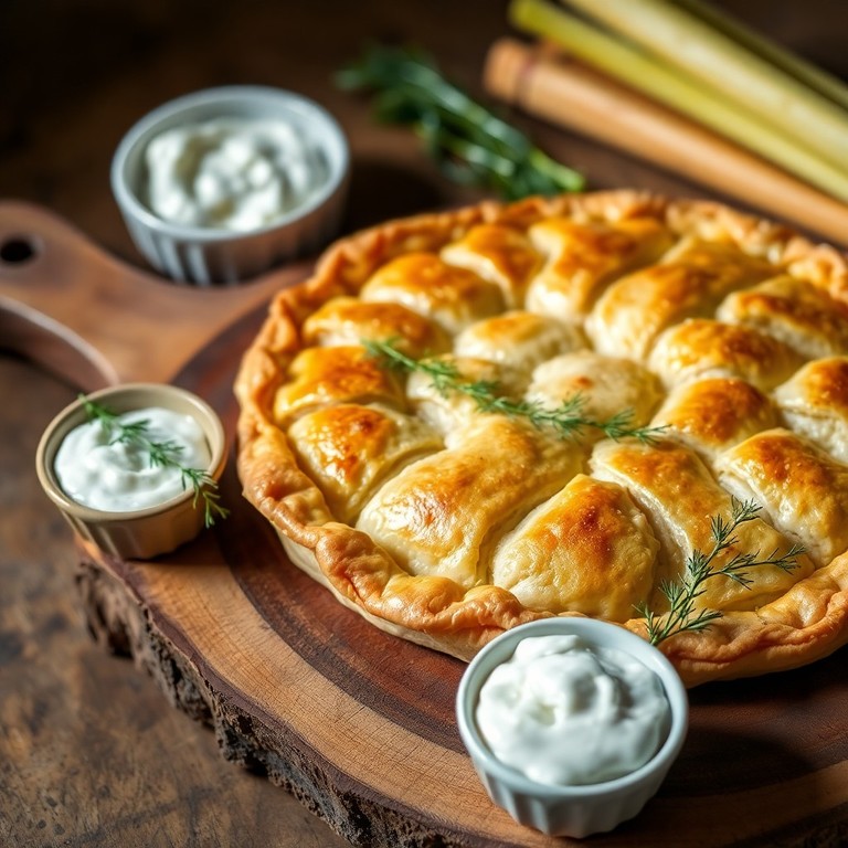 A traditional Greek savory pie featuring tender leeks and flaky phyllo dough, baked to golden perfection. This comforting dish combines the mild sweetness of sautéed leeks with creamy feta cheese, wrapped in crisp, buttery layers of phyllo. Ideal for a satisfying lunch or a light dinner, Alevropita showcases authentic Greek flavors in every bite.