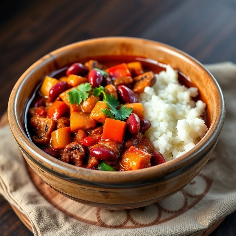 Chili sin carne épicé aux haricots rouges, poivrons et champignons