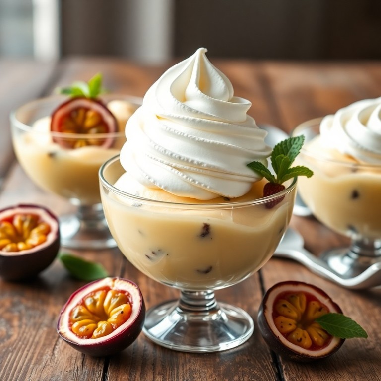Um sorvete suave e refrescante de maracujá feito com ingredientes simples como leite, açúcar e chantilly. Perfeito para uma sobremesa rápida, leve e irresistível, que traz o sabor tropical do maracujá com a cremosidade do chantilly.