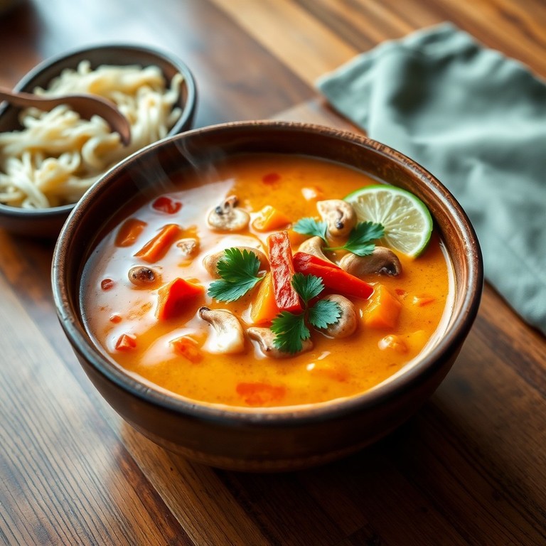 Una sopa cremosa y reconfortante que combina la suavidad de la leche de coco con los intensos sabores del curry y las verduras frescas. Esta receta es fácil de preparar y perfecta para disfrutar en cualquier momento que desees un plato lleno de aroma y sabor exótico.