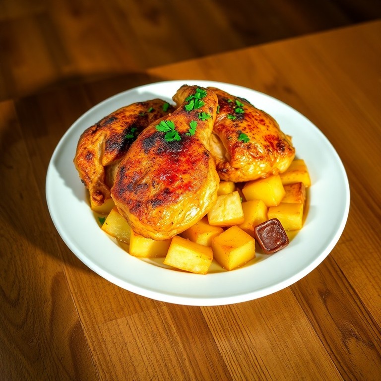 Pollo al horno con papas y especias